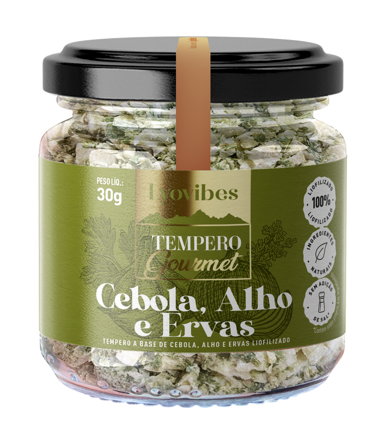 | Tempero Gourmet Cebola, Alho e Ervas Liofilizado Lyovibes – Vidro 30g